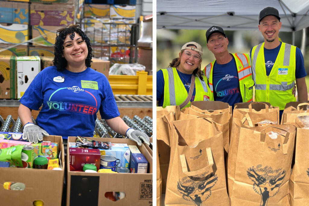 Volunteers from Universal Orlando Resort participated in two impactful opportunities. Some volunteered with Second Harvest Food Bank, sorting donations and building family food boxes, while others organized and packed groceries for military veteran families at Soldiers Angels.